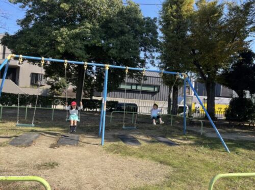 お友だちとお話をしながらブランコを楽しんでいました