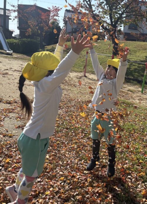 落ち葉が沢山落ちていて大興奮のみんなでした❤️