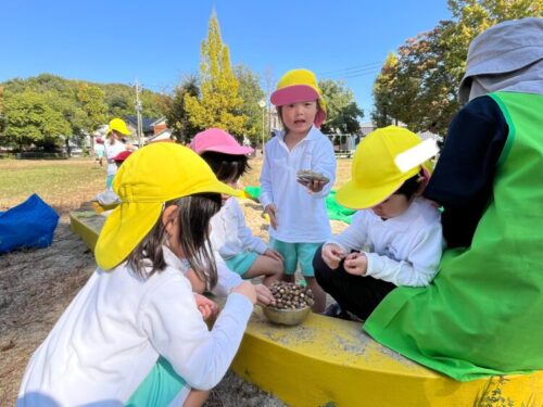 たくさんドングリが落ちていたのでみんなで拾いました