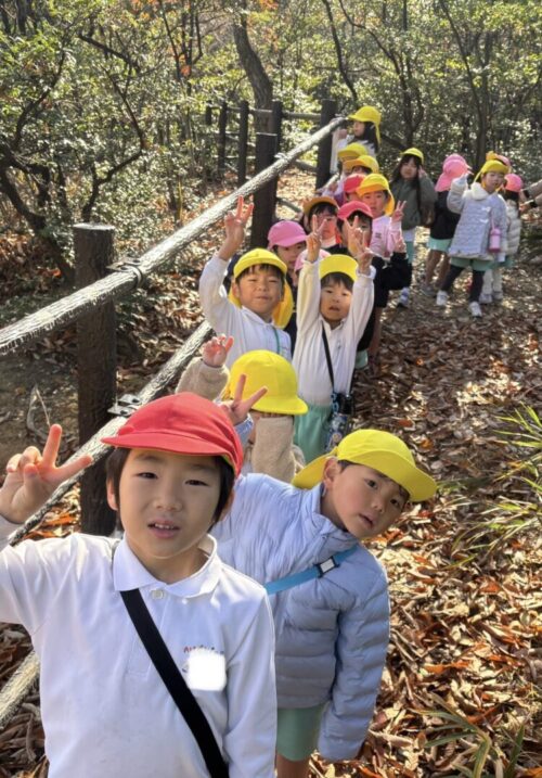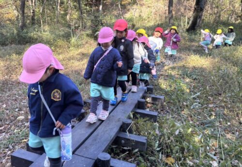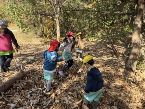「トランポリンみたい!」と落ち葉のトランポリンでたくさん飛び跳ねていましたよ