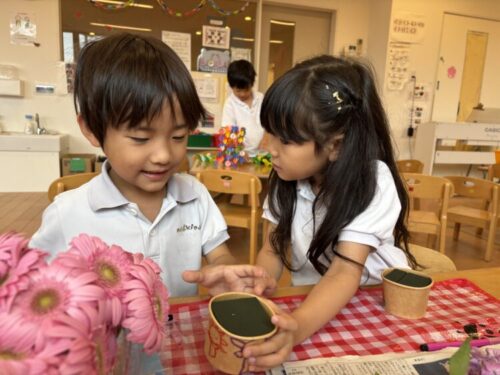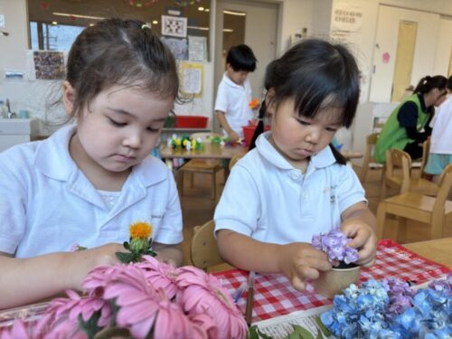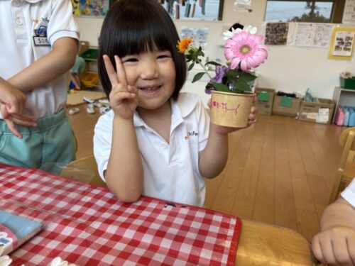 「ジャーン!」と完成したフラワーアートを見せてくれたお友だち