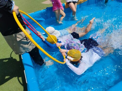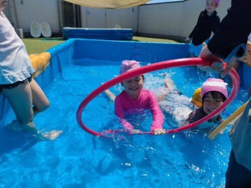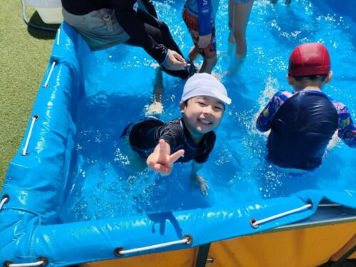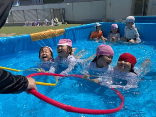 今日はプール遊びをしました