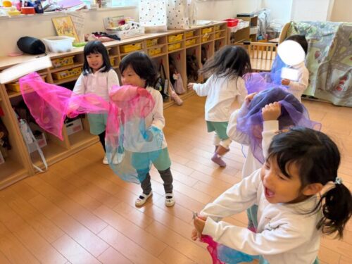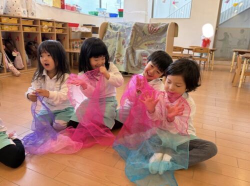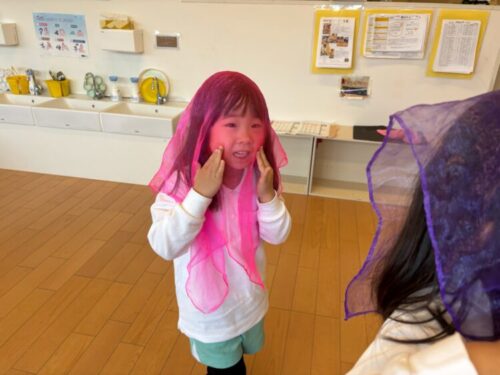 ピアノの音に合わせて「ばぁ!」とスカーフを取るととってもステキな笑顔が見えました![]()