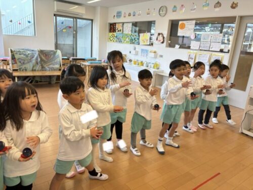カスタネットも講師の先生と一緒にリズムを取って叩けたね![]()