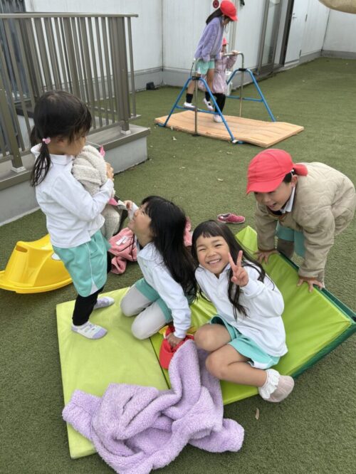 屋上ではマット遊びや鉄棒を楽しんでいました![]()