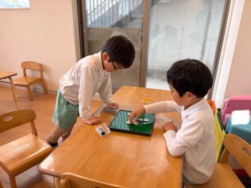室内遊びではクリスマスプレゼントでもらったオセロを楽しむお友だち![]()