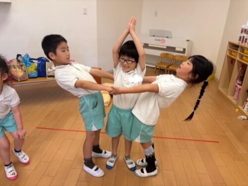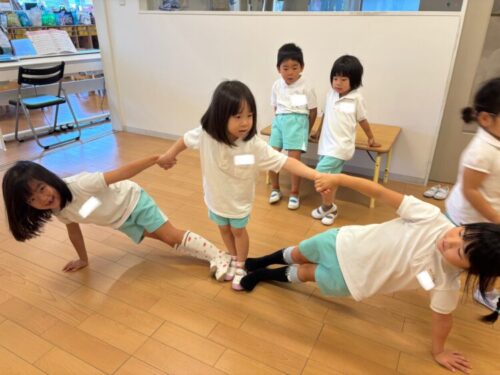 朝に「組体操やってみる❓」と声をかけてみたら「え!やるやるー😚」と乗り気のみんなでした