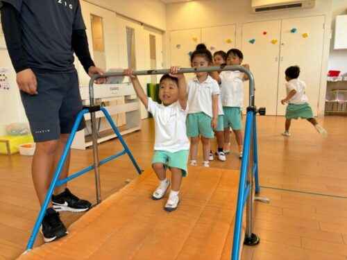 くま組さんは跳び箱を使って逆上がりもやっていました![]()