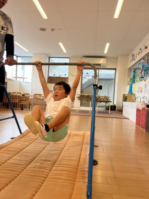 逆上がりを頑張るくま組さん