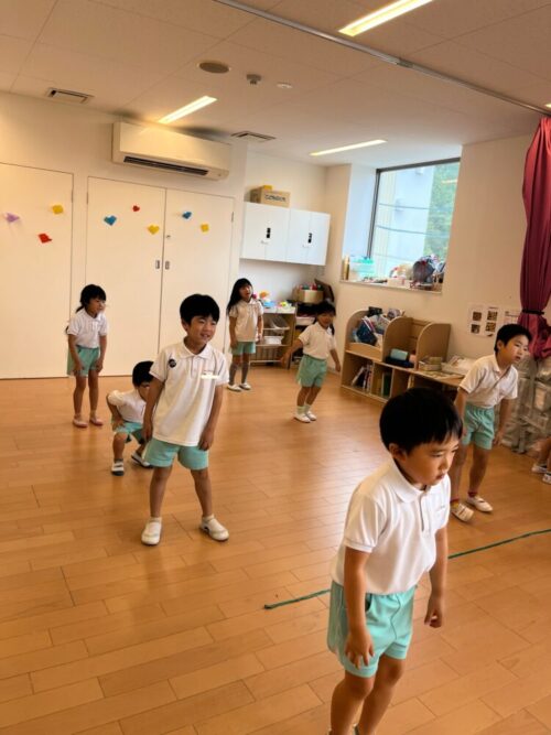 くま組さんは組体操をする時の場所で準備体操をしていましたよ