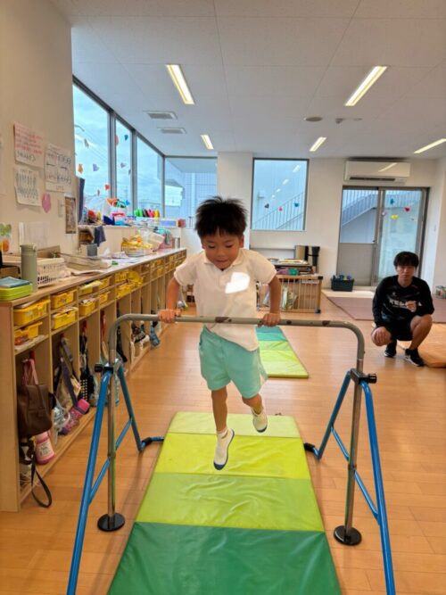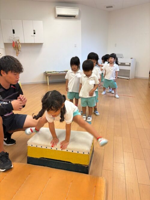 跳び箱にも挑戦しましたよ🎶足をしっかりと広げて跳ぶことができていました👏