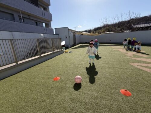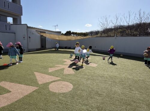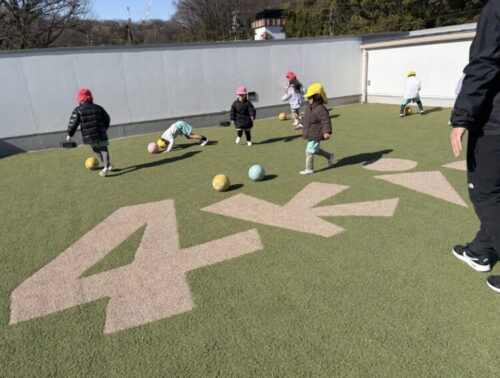 きりん組からは距離が少し遠くなり、挑戦しましたが、ゴールを決めれる子が多くいましたよ👏