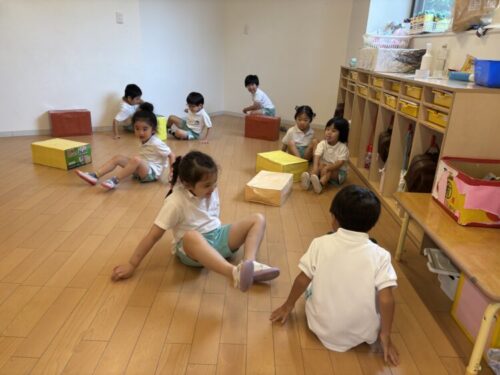 朝のお部屋タイムで、『おしり鬼ごっこ』をするお友だちたち![]()