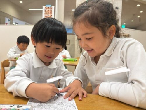 一緒に塗り絵をする微笑ましい姿もありました