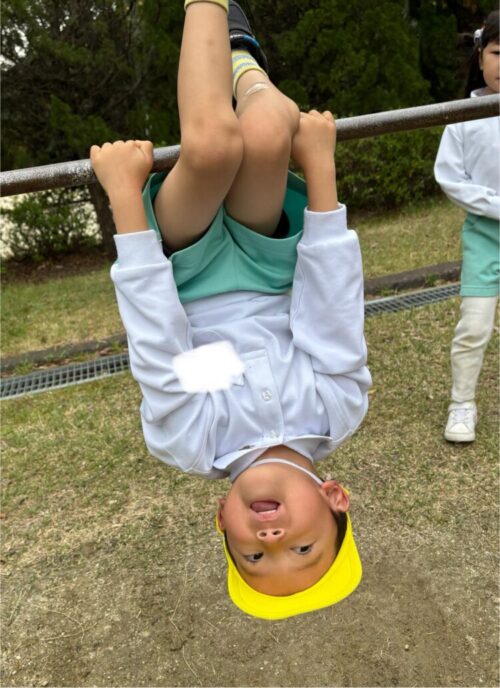 鉄棒では、「こんなこともできるよ!」と披露してくれました♪
