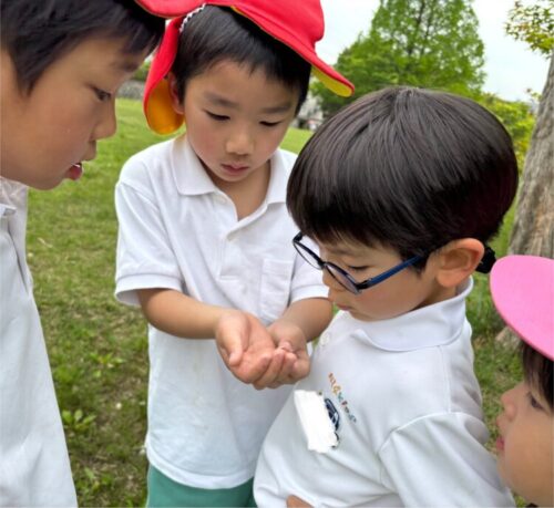 バッタの赤ちゃんも見つけて興味津々で観察するみんなでしたよ🌟