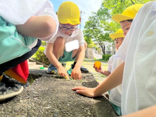 「アリの巣見つけた💡」と大喜びのお友だち