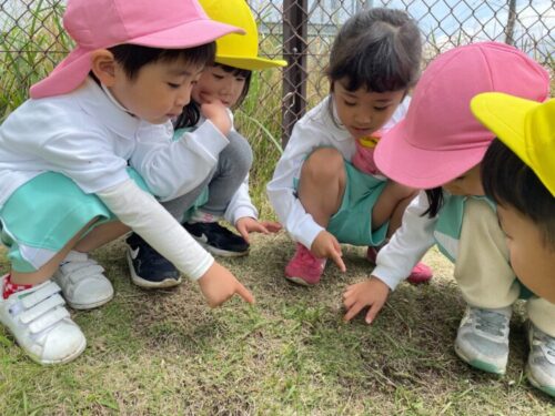 早速だんごむしを見つけると、教えてくれるお友だち![]()