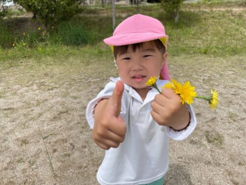 タンポポもたくさん咲いていて嬉しそうに摘むお友だち🩵