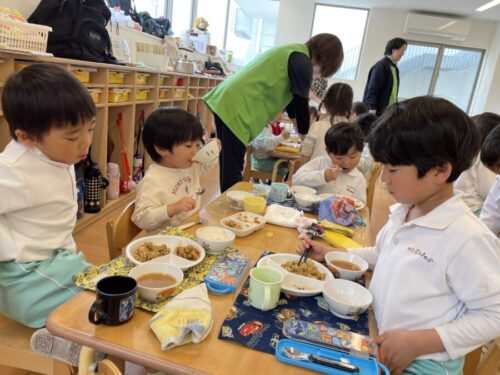 給食タイム!!今日もモリモリとたくさん食べていたみんなです🌼