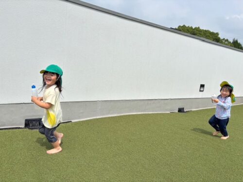 ペットボトルやドレッシングボトルの水鉄砲で水の掛け合いだ~![]()