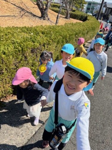 もうすぐ卒園のくま組さん🌸他のクラスのお友だちと交流ができるようにうさぎ組さんと手繋ぎ散歩へ🎵