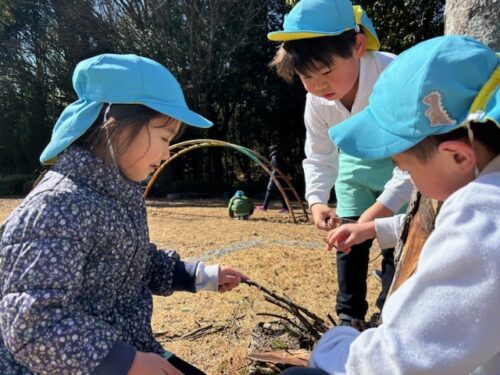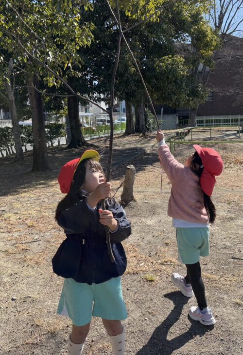 キャンプごっこをしたり、枝とツルを使って剣や釣竿を作ったりしてました‼️