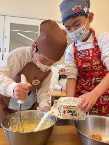 材料を計るのも混ぜるのも全部自分たちで役割分担して行いました![]()