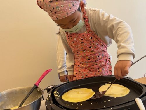 生地を焼くのもひっくり返すのも子どもたちが挑戦しました