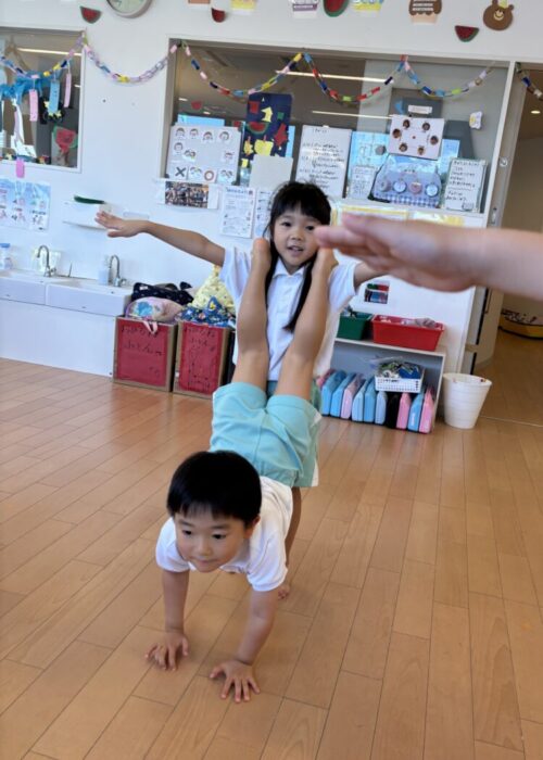 昨日は1人技をしましたが、今日は2人技にチャレンジ🎵