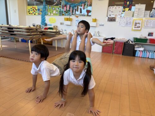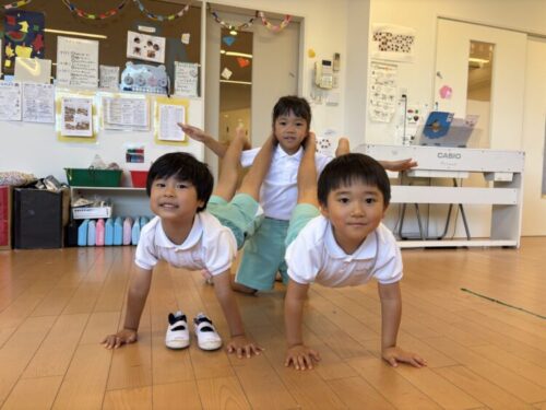今日も組体操をしました‼️色んな三人技にチャレンジしました🎵