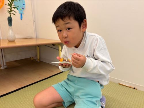 「お菓子をどうぞ」「ありがとう」と嬉しそうに取り組んでいましたよ![]()
