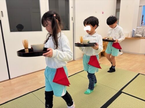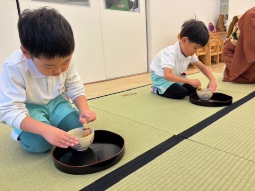 お友だちのためにお茶を点てます‼️だんだんと上手に点てられるようになってきましたよ👏