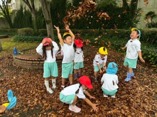動物園の上池門の前の広場には、落ち葉がたくさん‼️落ち葉遊びを楽しみました💕