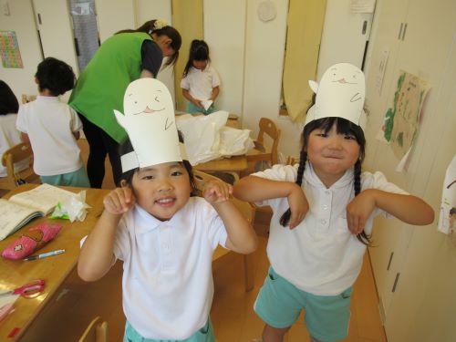 最近大ブーム中の“メリおっとたいそう”のメリおくんのお面を作ったお友だちもいました![]()