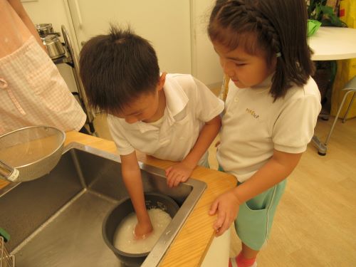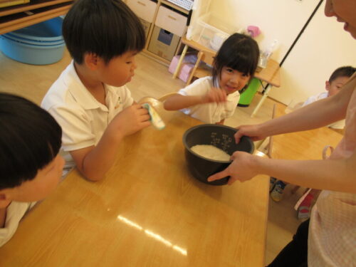 一人ひとりが研ぐ体験をしました👏美味しいおにぎりを作ろうね![]()