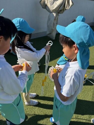 片付けに時には結び方を教え合っている姿が見られました👏