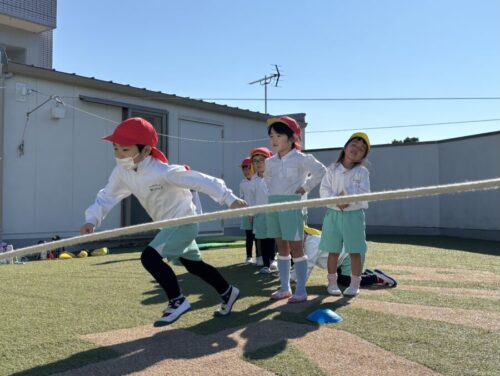大縄の中も通り抜けました!『1、2、3入る』の掛け声に合わせて通り抜けていましたよ😚