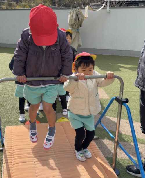 体操教室では久しぶりに鉄棒をしました‼️逆上がり難しいね🥹