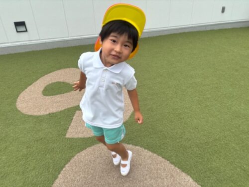 水遊びができない子も、フラフープをしたり、鬼ごっこをしたり、ケンケンパをしたりして屋上で好きな遊びを見つけて楽しんで遊びました![]()