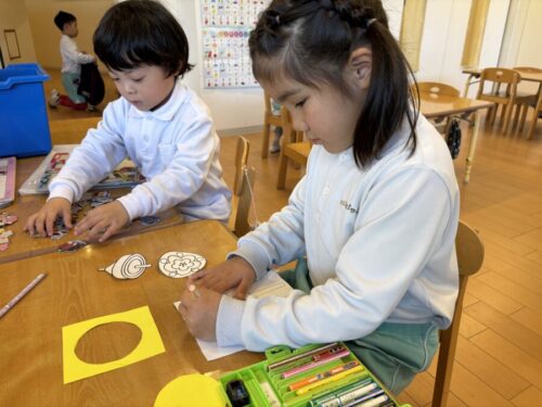 型紙を上手になぞって、可愛らしく壁面を作っていましたよ🎍✨