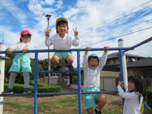 公園ではドロケイが盛り上がっていましたよ👮捕まった泥棒たちが仲間の助けを待っていました‼️