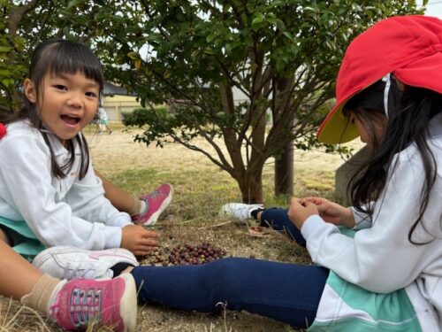 公園にはたくさんの実がなっていたり落いていたりしました☺️実を剥くと中から種が出てくることを発見していましたよ✨