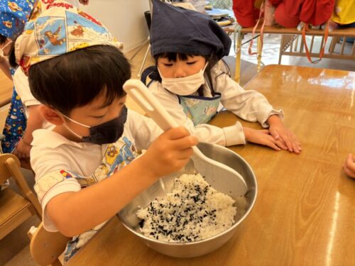 わかめおにぎりチームと塩おにぎりチームに分かれてつくりました!