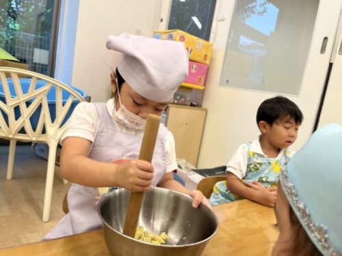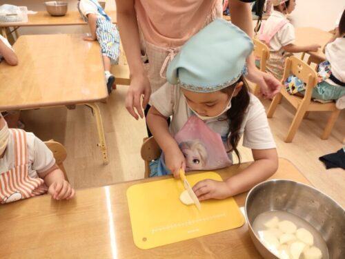 さつま芋を包丁で切りました保育園では初めて使う包丁です