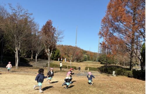 落ち葉を魚に見立てて魚釣りごっこをしているお友だちもいましたよ🎣