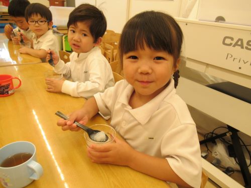 好きな形のシャーベットを選べて嬉しそうな様子のお友だち💕