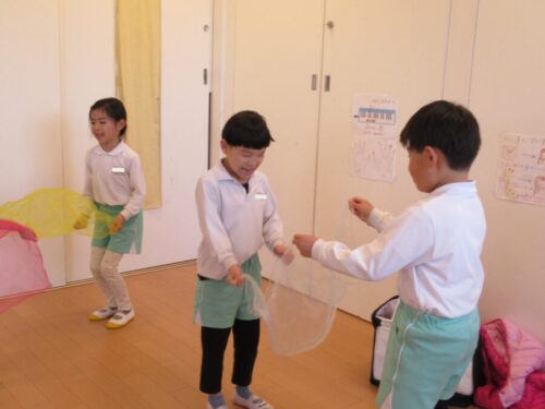 スカーフを使って“凧”遊びの表現もしました