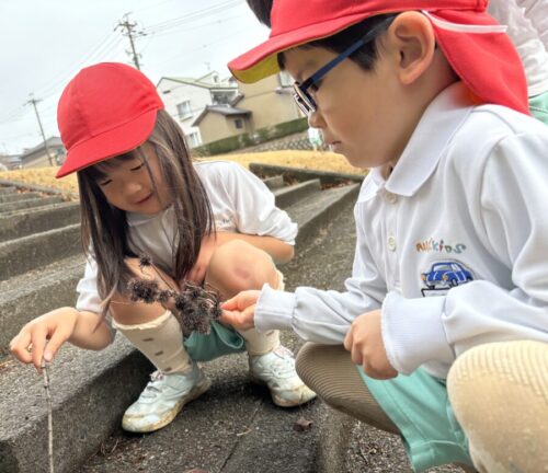 暖かくなってきたので、「ダンゴムシを探そう!」と提案すると夢中になって探すお友だち💖