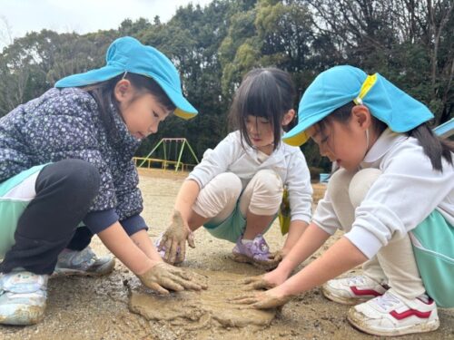 雨上がりだったので泥んこ遊びを楽しむお友だちもいましたよ🎵